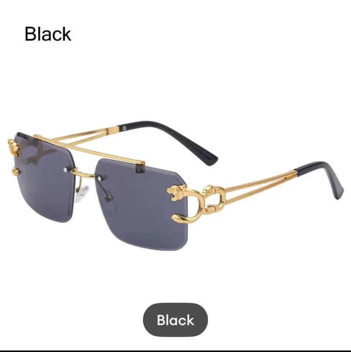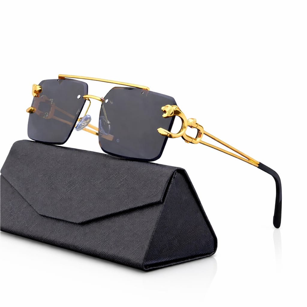 Luxury Rimless Sunglasses for Men – Gold Metal Frame | Panther Side Design | Square UV400 Protective Shades